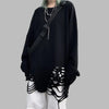 Sweat-shirt noir punk rock à trous oversize grunge