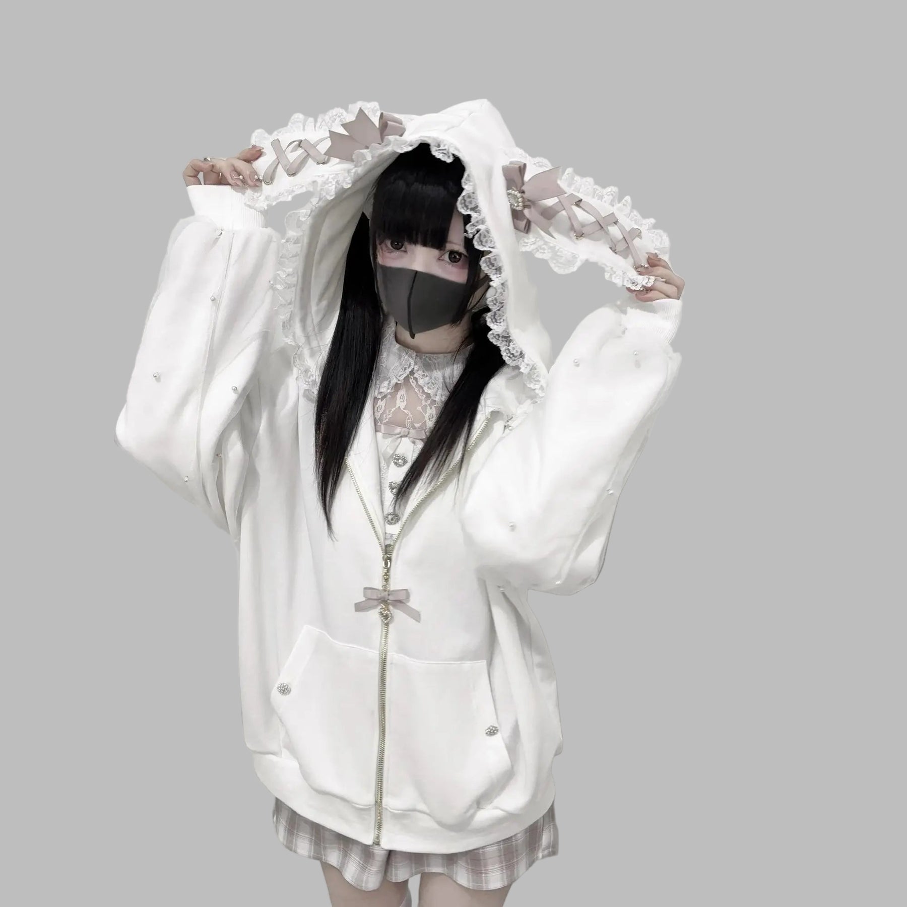 Sweat-shirt oversize Jirai Kei avec nœuds en dentelle blanc Voir les options
