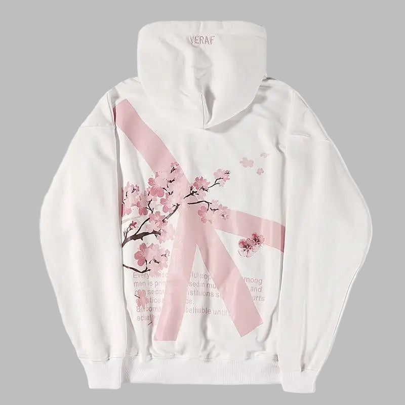Sweatshirt blanche Jirai Kei avec fleurs de cerisier roses