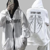 Sweatshirt blanche style metal avec inscriptions et os de colonne vertébrale