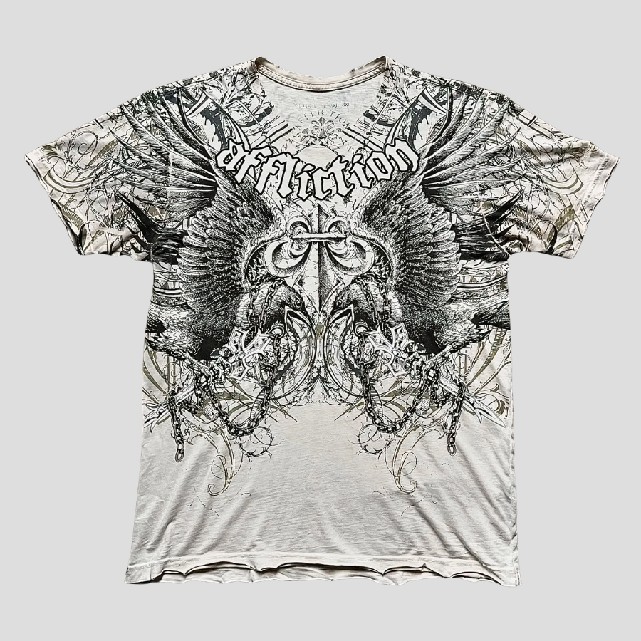 T-shirt Blanc avec Ailes Gothiques et Croix 4XL