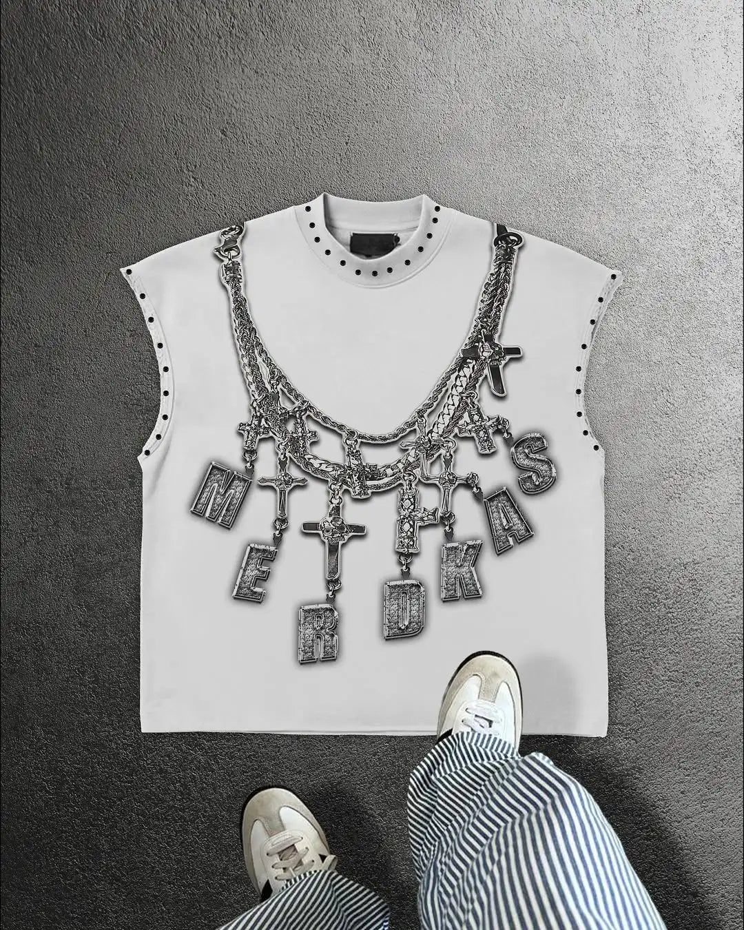 T-shirt Blanc Punk avec Graphisme Chaînes Métalliques Voir les options