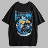 T-shirt noir style metal avec imprimé planétaire bleu