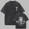 T-shirt oversize grunge avec croix et inscription Believe gothique 3XL