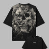 T-shirt oversize noir avec crâne et roses style metal XXL