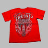 T-shirt rouge en métal avec croix et ornements Tap Out