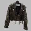 Veste en cuir cloutée avec chaînes noire punk gothique métal pour femme