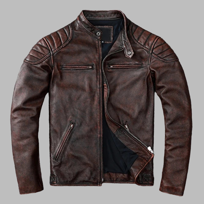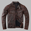 Veste en Cuir Vintage Marron Rock avec Surpiqûres