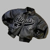 Veste en cuir noir punk métal avec imprimés blancs oversize XXL
