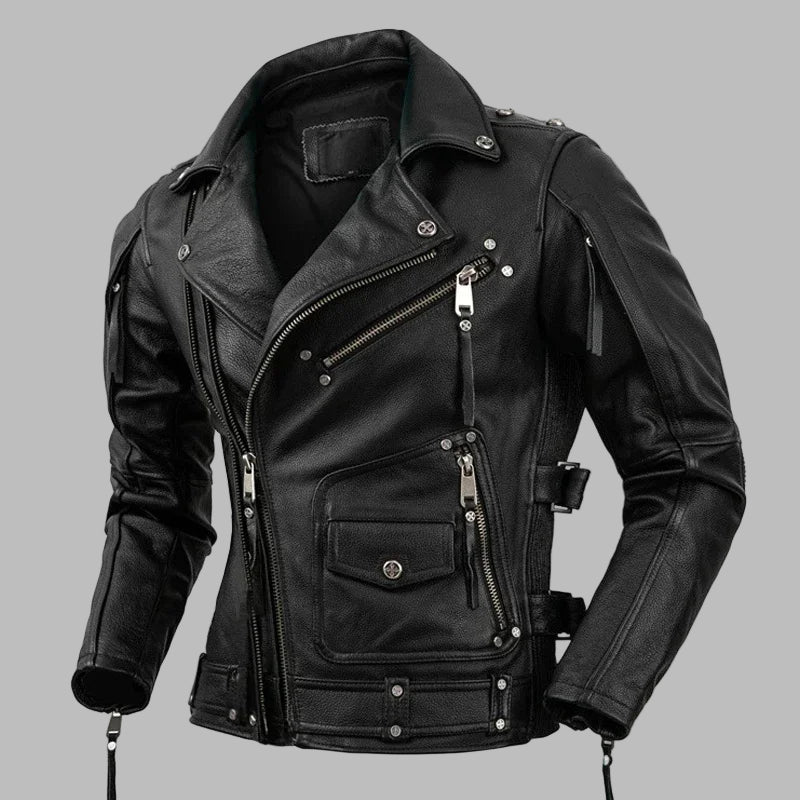 Veste en cuir noire style punk rock métal perfecto 8XL