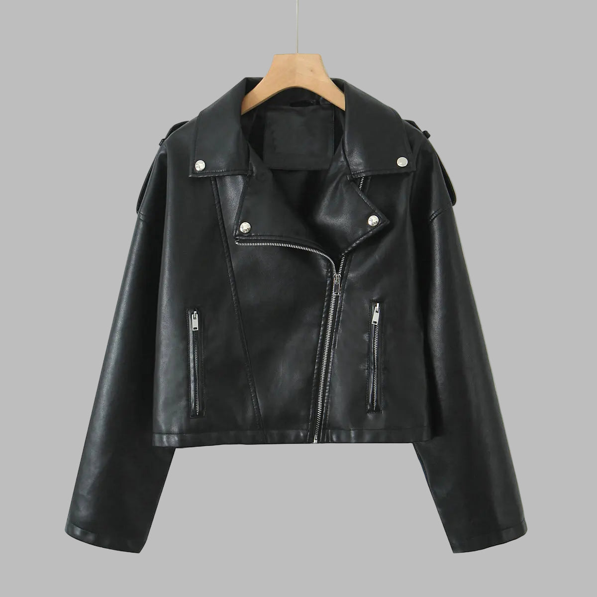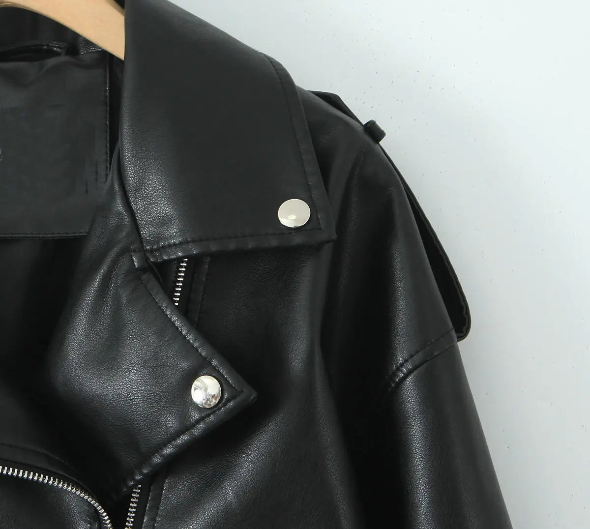 Veste en Cuir Noire avec Lacets Gothique Métal
