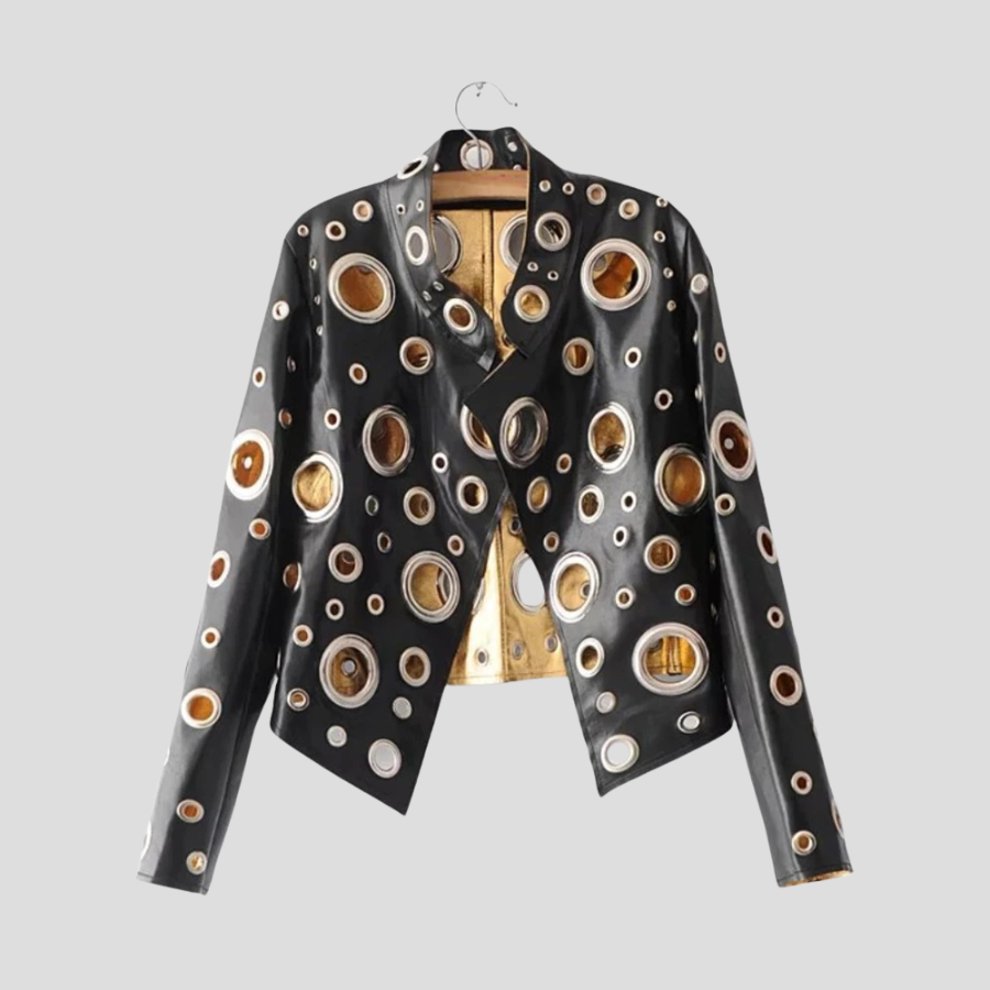 Veste en Cuir Noire avec Œillets Métalliques Steampunk