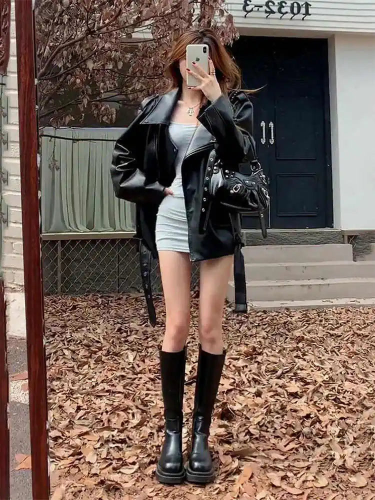 Veste en cuir noire goth punk metal oversize style perfecto