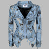 Veste en Cuir Style Punk Rock Métal Imprimé Journal Bleu