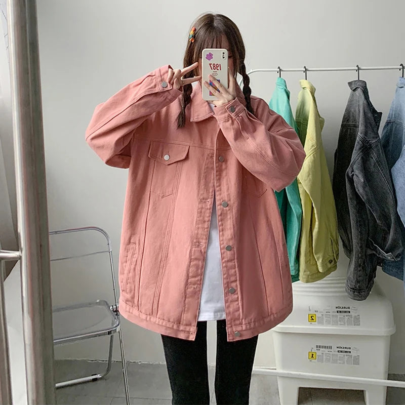 Veste en Jean Oversize Vintage Rose Style Punk Rock