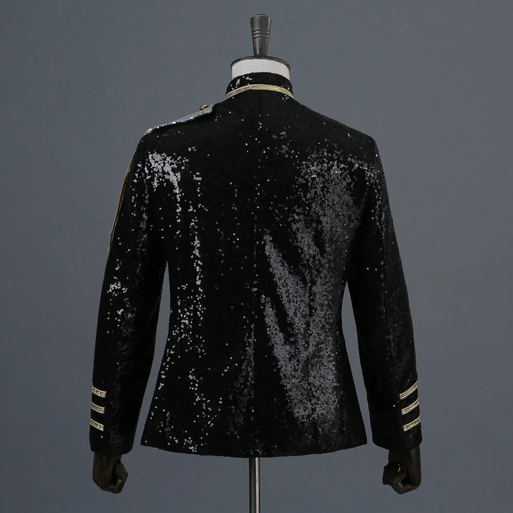 Veste Métal Noire à Paillettes avec Chaînes et Détails Dorés