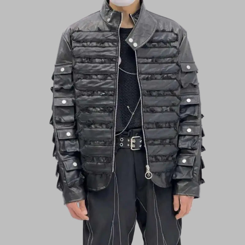Veste Futuriste Grunge à Rayures et Clous Techwear