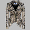 Veste Motard en Cuir Motif Serpent Beige Femme