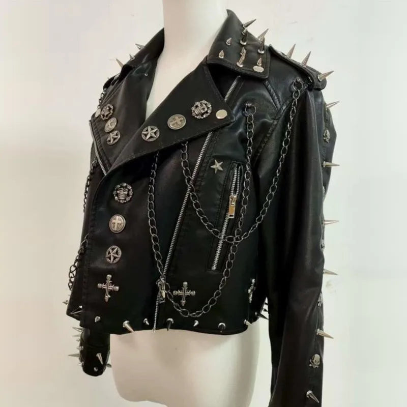 Veste Punk Noire à Clous Chaînes Femme Courte