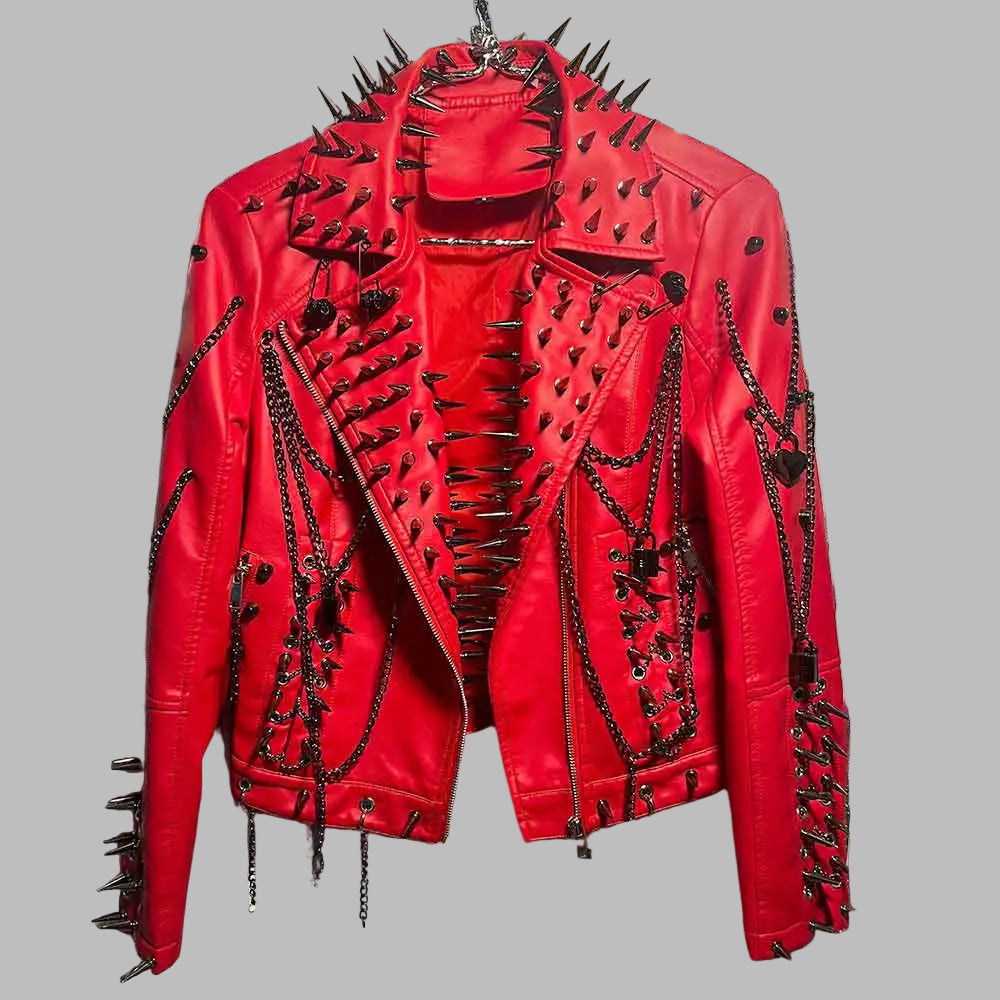 Veste Punk Rouge avec Clous et Chaînes Voir les options