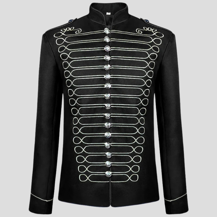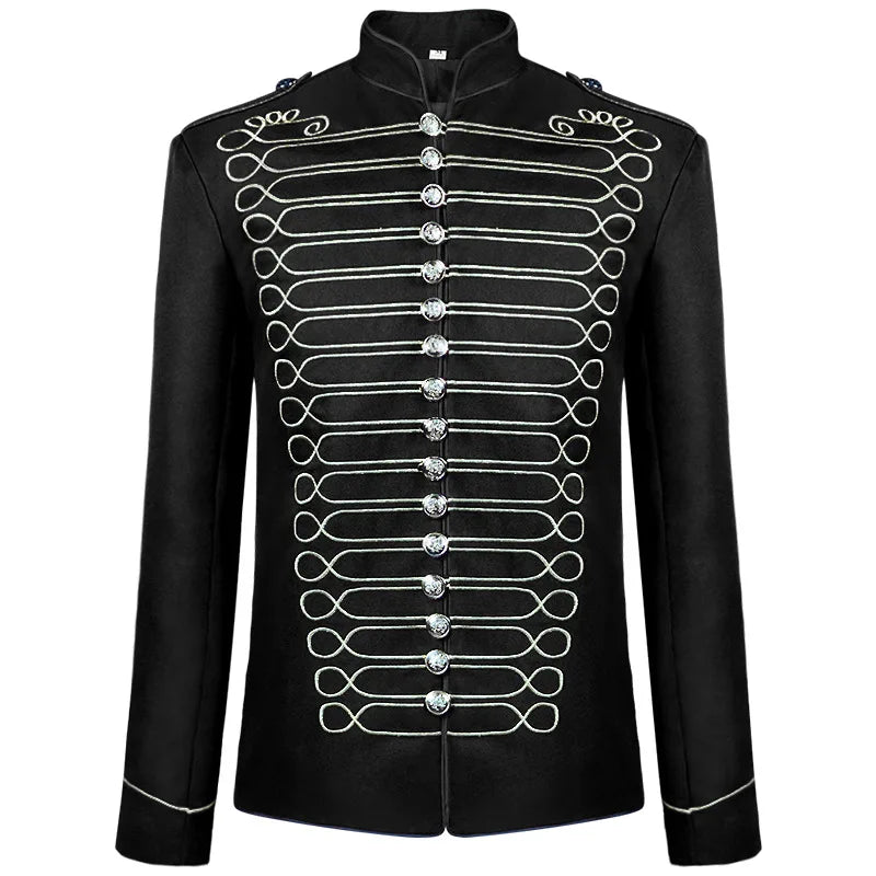 Veste Steampunk Noire avec Cordons Décoratifs Blancs pour Homme